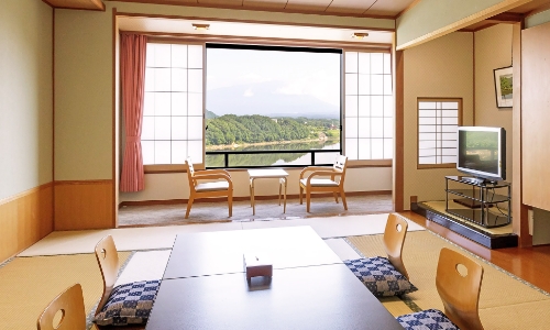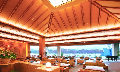 ホテル紫苑では、御所湖を一望できる開放感あふれるロビーをご用意しております。